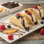 Top your filled tacos with extra mini chocolate chips, sprinkles, or a drizzle of chocolate sauce for that extra flair!