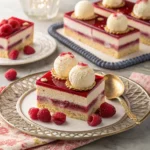 To make this delightful cake, you’ll need flour, sugar, baking powder, eggs, butter, vanilla extract, and fresh raspberries. For a creamy filling, consider using whipped cream or a cream cheese substitute. Don’t forget to have some raspberry puree for that extra flavor!